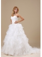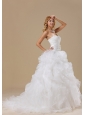 Popular Style Ruffles Decorate Bodice Hand Made Flowers A-line Court Train Organza 2013 Wedding Dress
