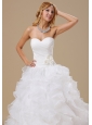 Home >  Wedding Dresses >  Ball Gown Wedding Dresses > Popular Style Ruffles Decorate Bodice Hand Made Flowers A-line Court Train Organza 2013 Wedding Dress