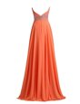 Popular Sweep Train A-line Evening Dress Orange Red Scoop Chiffon Sleeveless Zipper