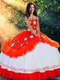 Home >  Quinceanera Dresses >  Cute Quinceanera Dresses > Popular Sweetheart Sleeveless Organza and Taffeta Quinceanera Dresses Embroidery and Ruffles Lace Up