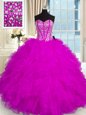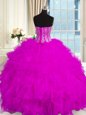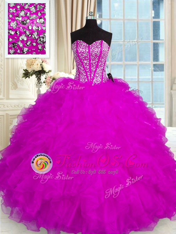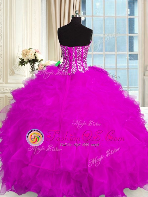 Popular Sweetheart Sleeveless Organza Quinceanera Dresses Beading and Ruffles Lace Up