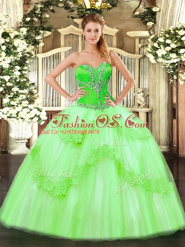 Popular Sweetheart Sleeveless Tulle Sweet 16 Dresses Beading and Ruffles Lace Up