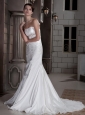 Popular Trumpet / Mermaid Strapless Court Train Taffeta Beading Wedding Dress