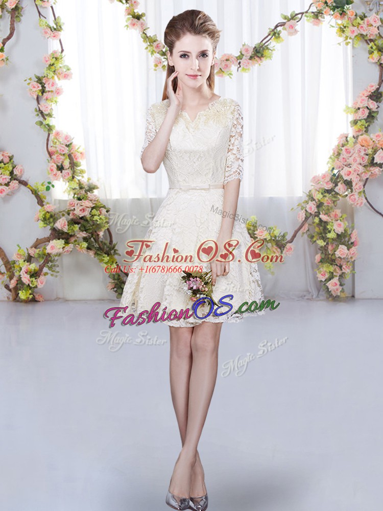 Popular V-neck Half Sleeves Lace Quinceanera Court Dresses Belt Zipper