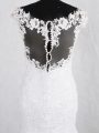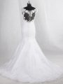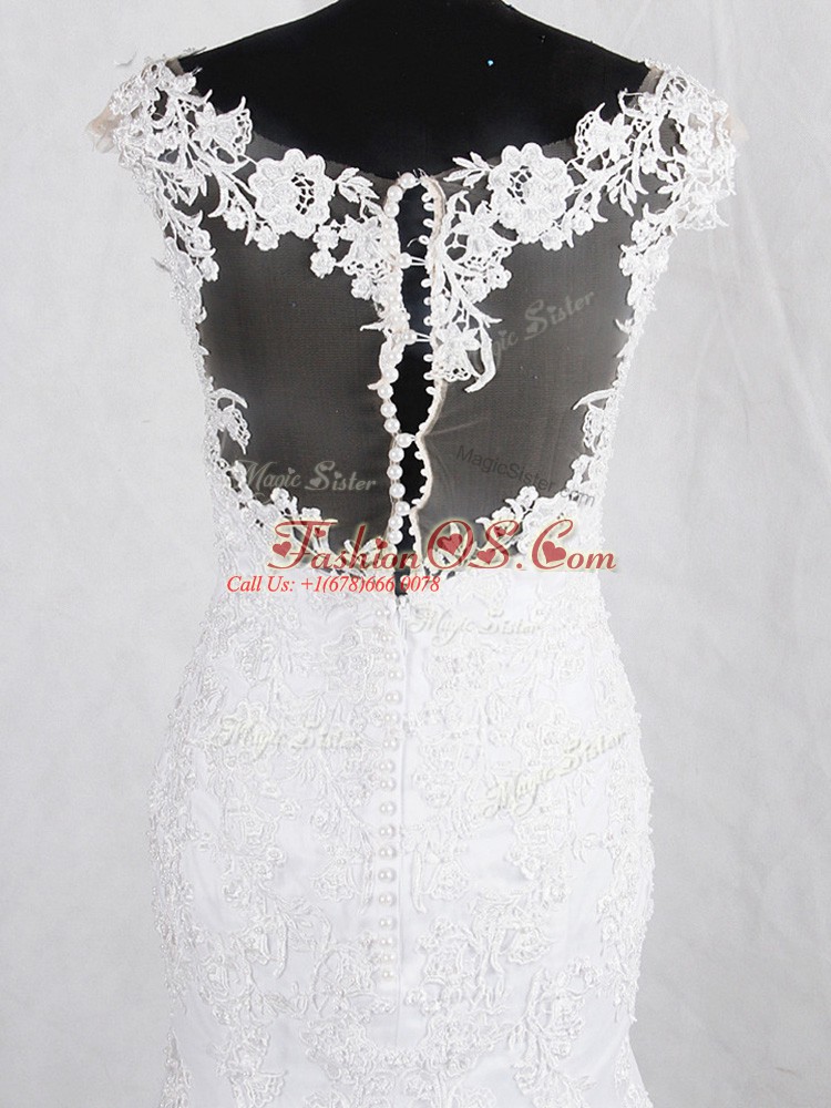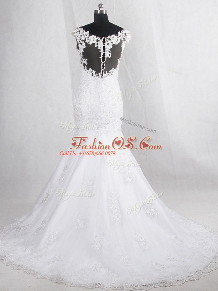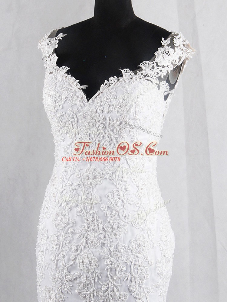 Popular V-neck Sleeveless Tulle Wedding Gown Lace Brush Train Clasp Handle