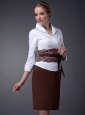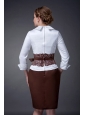 Popular White and Brown Column V-neck Mother Of The Bride Dress Mini-length Taffeta