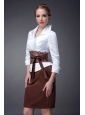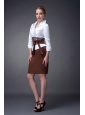 Home >  Special Occasion Dresses >  Mother of the Bride Dresses > Popular White and Brown Column V-neck Mother Of The Bride Dress Mini-length Taffeta