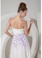 Popular White Empire Strapless Evening Dress Chiffon and Printing Beading Floor-length