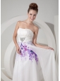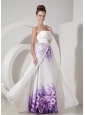Home >  Evening Dresses > Popular White Empire Strapless Evening Dress Chiffon and Printing Beading Floor-length