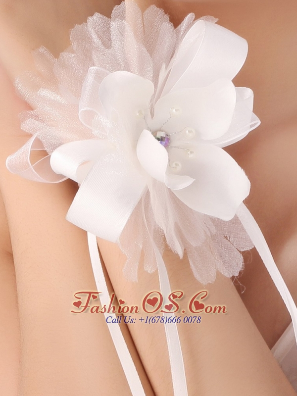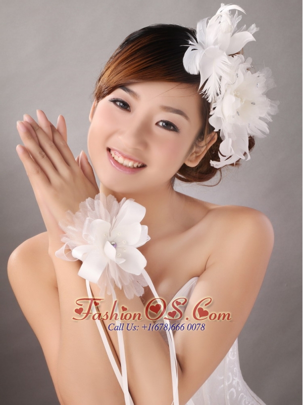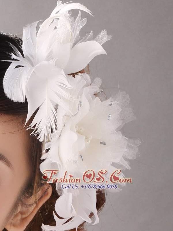Home >  Accessories >  Headpieces > Popular White Feather Organza Flowers Fascinators and Wrist Corsage