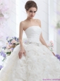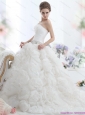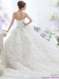 Popular White Strapless Beach Wedding Dresses with Rolling Flowers and Chapel Train