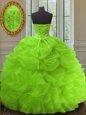 Popular Yellow Green Organza Zipper Sweet 16 Dresses Sleeveless Floor Length Beading