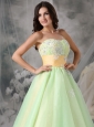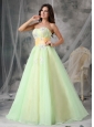 Popular Yellow Green Sweetheart Prom Dress Organza Appliques