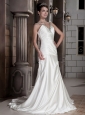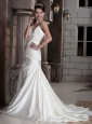 Prefect A-line / Princess V-neck Court Train Elastic Wove Satin Beading Wedding Dress