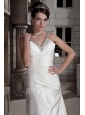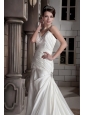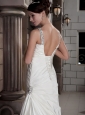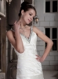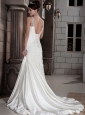 This big day is your day, and your wedding dress is the key way that you share yourself with your wedding guests. This is a white wedding dress with a-line silhouette and sweep train. Featured with V-neck and beaded embellishment. Satin as the recent fashion fabric, it is soft, the ruched bodice and natural pleats make it elegant, breathable. The high quality but inexpensive price which can make you feel delighted and comfortable. All this will show you most beautiful side. This is a best sensible choice on your wedding day.