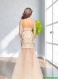 Pretty 2015 Column Scoop Beading Tulle Bridesmaid Dresses in Champagne