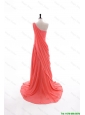 Home >  Prom Dresses >  Modest Prom Dresses > Pretty 2016 Fall Empire One Shoulder Brush Train Prom Dresses in Watermelon