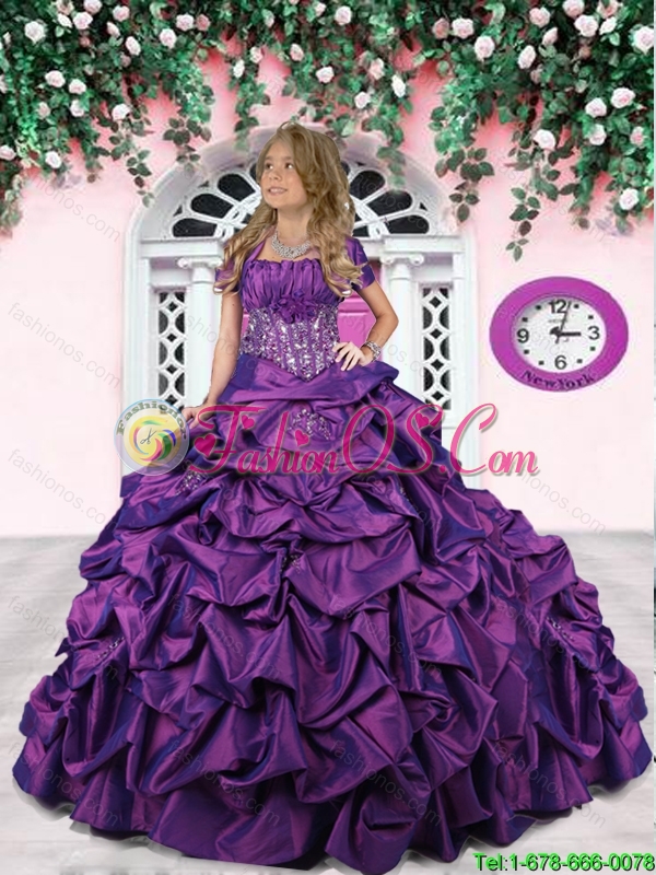 Pretty 2016 Summer Strapless Purple Little Girl Pageant Dress with Appliques and Pick-ups