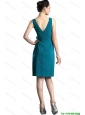 Pretty 2016 Teal V Neck Prom Gown with Hand Made Flowers