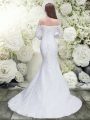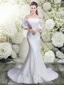 Pretty 3 4 Length Sleeve Lace Brush Train Lace Up Wedding Gown in White with Lace