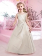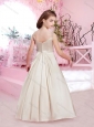 Pretty A Line Taffeta Straps Beaded Flower Girl Dress with Straps