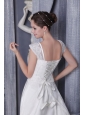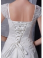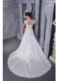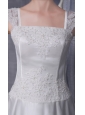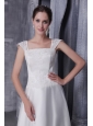 Pretty A-Line / Princess Square Neck Chapel Train Satin Beading and Appliques Wedding Dress