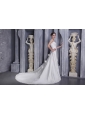 This fabulous wedding dress features beautiful embroidered and beaded floral appliques throughout the bodice and the skirt, this stunning wedding gown should be the focal point of the event and all eyes will be on you in this dress.