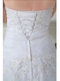 This is the perfect and pure dress for your wedding! The strapless bodice is full of delicate appliques and nice pleats that show your perfect curve. The rugged skirt add more details to the dress while the lovely train makes the dress so romantic. A lace up corset style closure in the back secures the dress in place. Make your wedding day everything you'd hoped for in this pretty bridal gown.