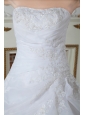 Pretty A-line / Princess Strapless Appliques Wedding Dress Brush Train Organza