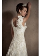Pretty A-line / Princess V-neck Court Train Taffeta and Organza Embroidery Wedding Dress