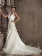 Home >  Wedding Dresses >  Affordable Wedding Dresses > Pretty A-line / Princess V-neck Court Train Taffeta and Organza Embroidery Wedding Dress