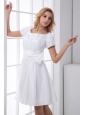 Pretty A-line Scoop Short Sleeves Wedding Dress with Ruching