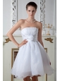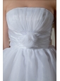 Pretty A-line Strapless Knee-length Short Wedding Dress Organza Hand Made Flower and Ruch