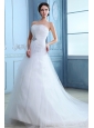 Pretty A-line Strapless Low Cost Wedding Dress Court Train Tulle Beading