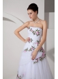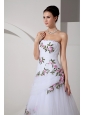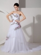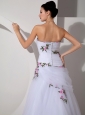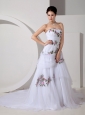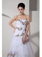 Pretty A-line Strapless Wedding Dress Court Train Tulle Appliques and Ruch