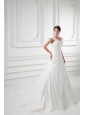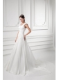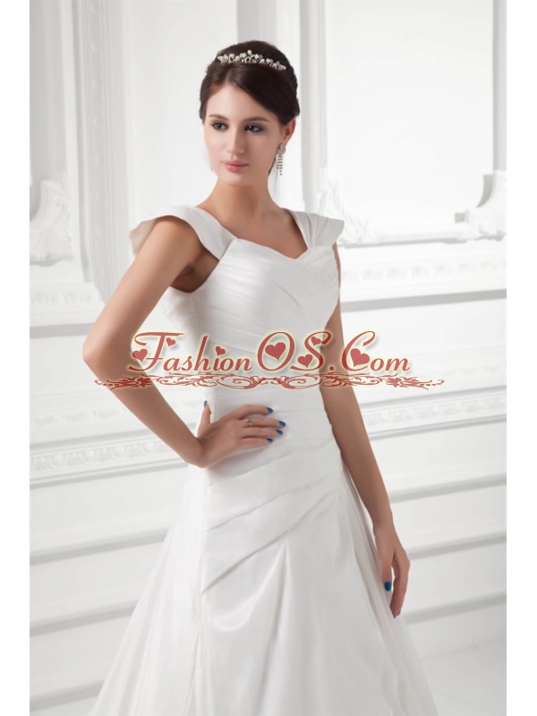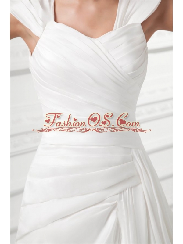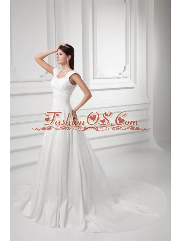 Pretty A-line Straps Chapel Train Wedding Dress with Ruching