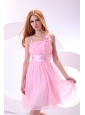 Pretty A-line Straps Knee-length Chiffon Sashes Pink 2014 Prom Dress