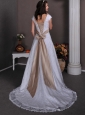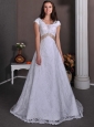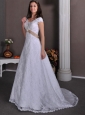 Home >  Wedding Dresses >  Lace Wedding Dresses > Pretty A-line V-neck Wedding Dress Taffeta and Lace Beading Court Train