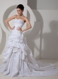 Pretty A-line Wedding Dress Sweetheart Hand Made Flower and Appliques Court Train Taffeta