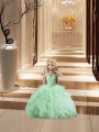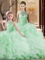 Pretty Apple Green Halter Top Lace Up Beading and Ruffles 15 Quinceanera Dress Brush Train Sleeveless