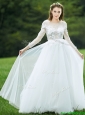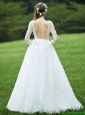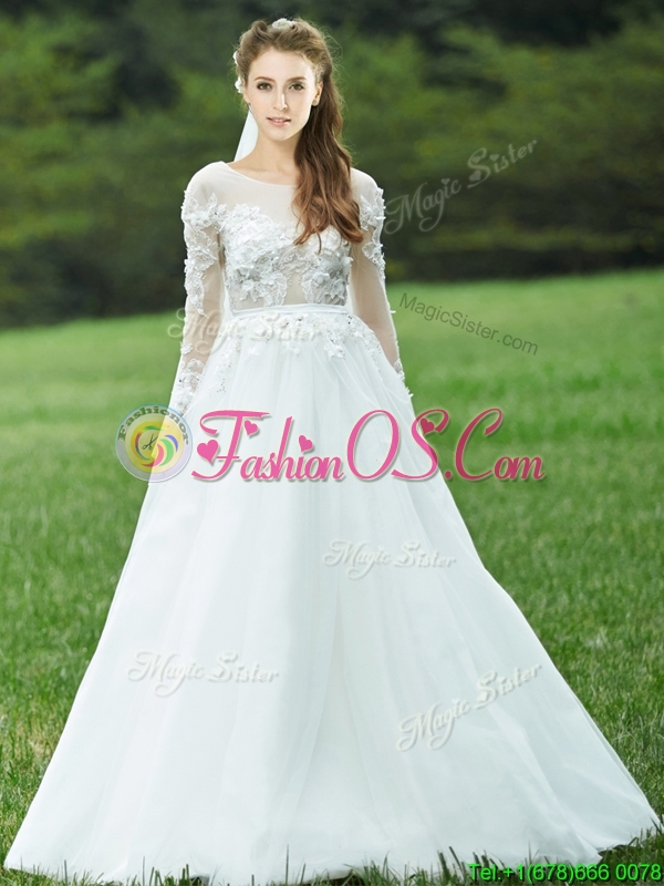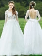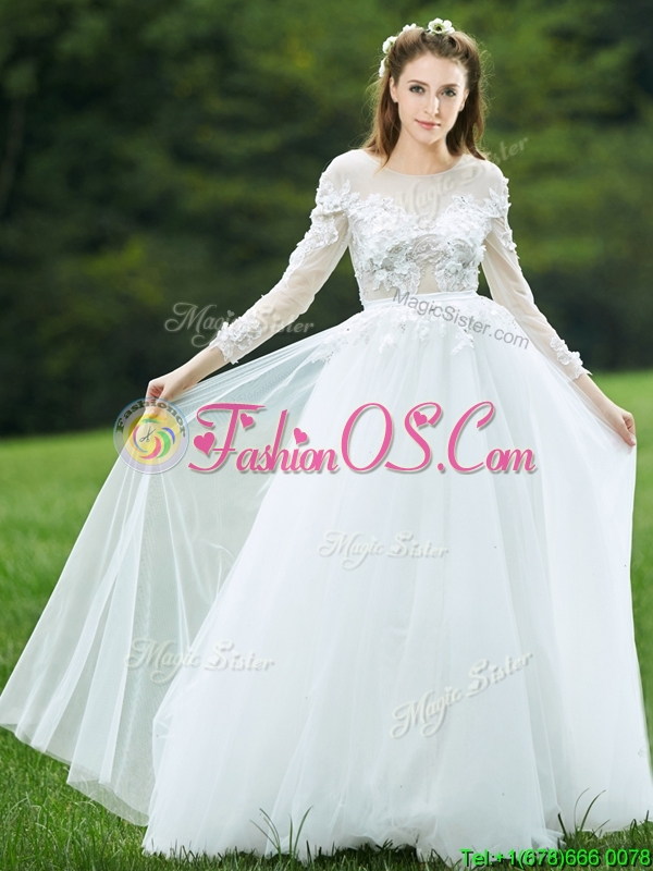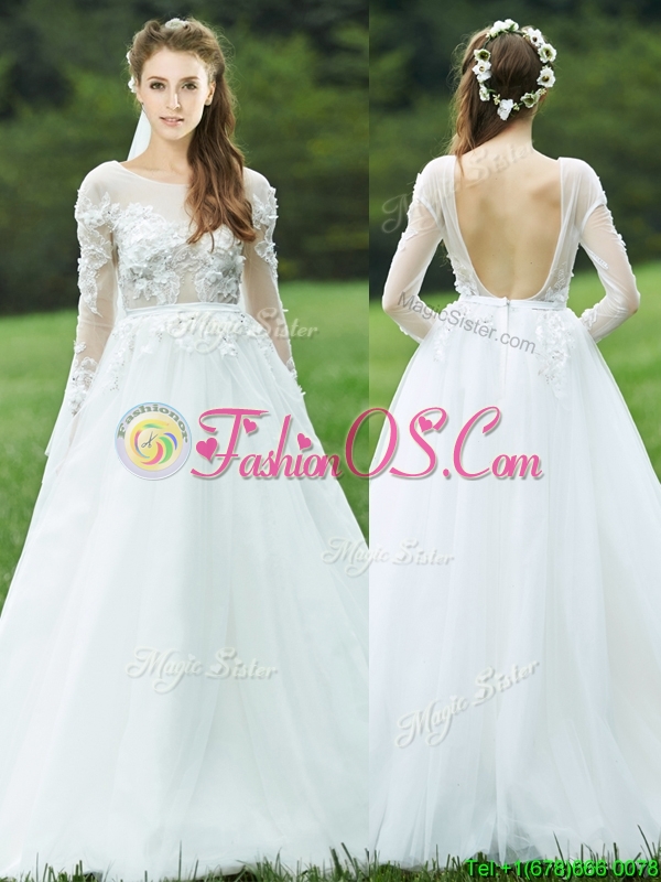Pretty Applique White Backless Dama Dress with Long Sleeves