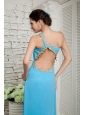 Pretty Aqua Blue Empire One Shoulder Prom Dress Floor-length Chiffon Appliques