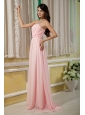 Home >  Bridesmaid Dresses >  Cheap Bridesmaid Dresses > Pretty Baby Pink Bridesmaid Dress Empire Strapless Chiffon Ruch Brush Train