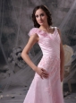 Pretty Baby Pink Princess V-neck Evening Dress Chiffon Appliques and Ruch Floor-length