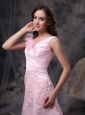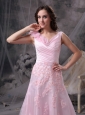 Home >  Evening Dresses > Pretty Baby Pink Princess V-neck Evening Dress Chiffon Appliques and Ruch Floor-length