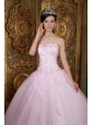 Pretty Baby Pink Quinceanera Dress Sweetheart Tulle Appliques Ball Gown