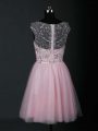 Pretty Baby Pink Short Sleeves Mini Length Beading Lace Up Prom Dress