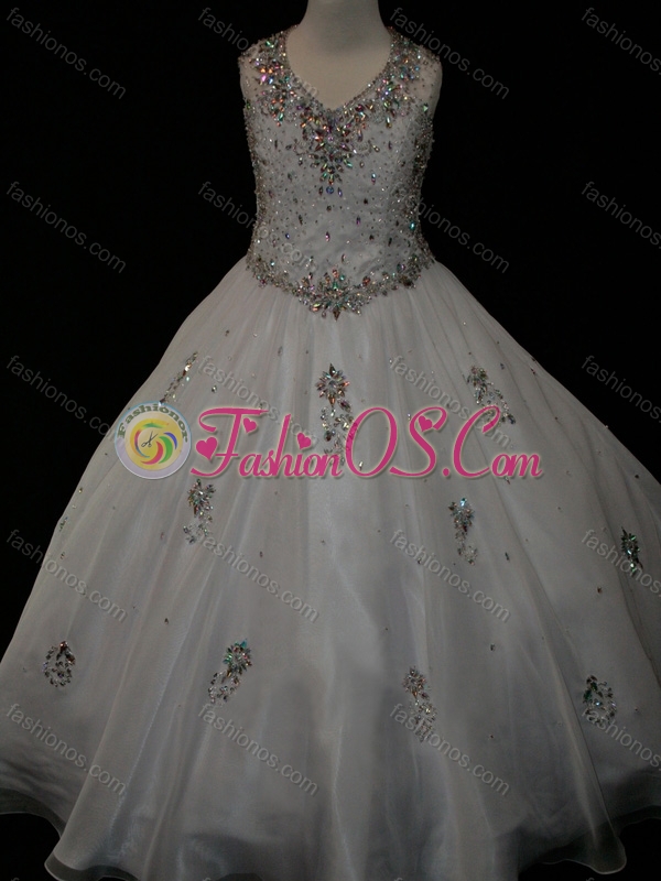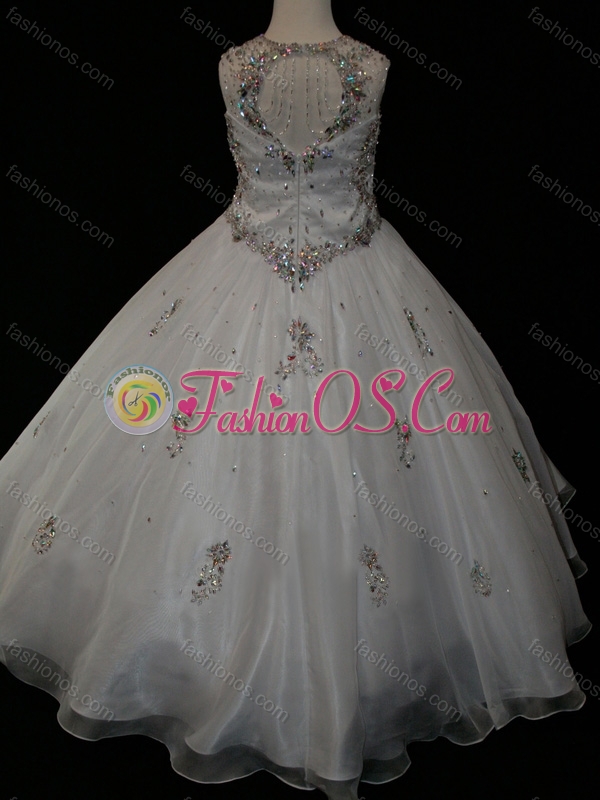 Home >  Special Occasion Dresses >  New Style Little Girl Pageant Dresses > Pretty Ball Gown Beaded and Applique White Little Girl Pageant Dress in Organza