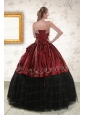 Pretty Ball Gown Embroidery 2015 Quinceanera Dresses in Wine Red and Black