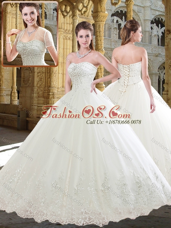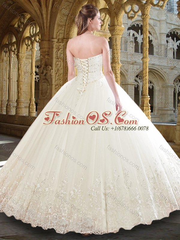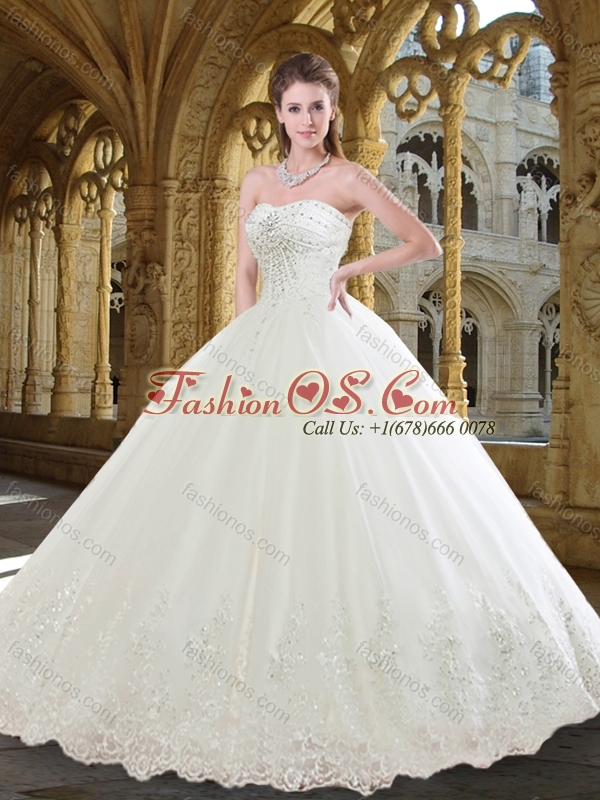 Pretty Ball Gown Sweetheart Wedding Dress with Beading and Appliques
